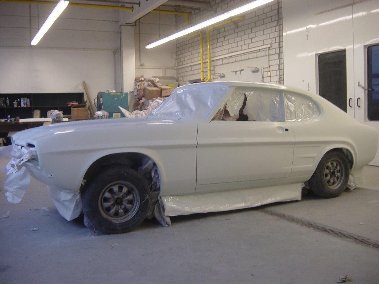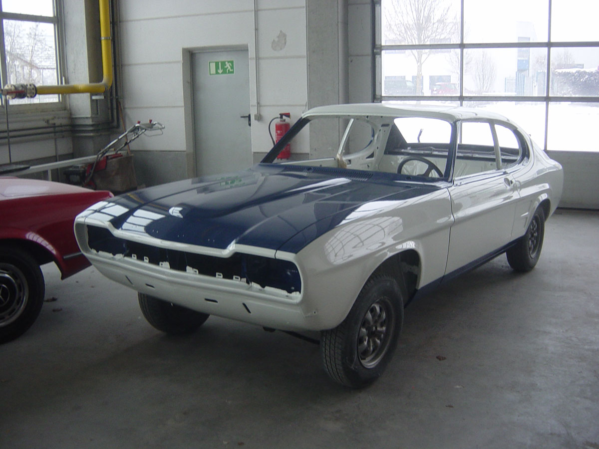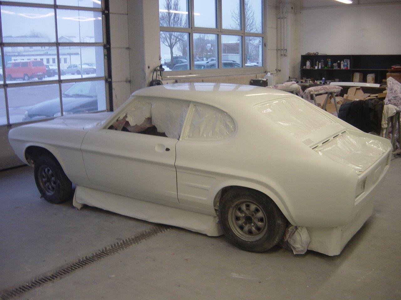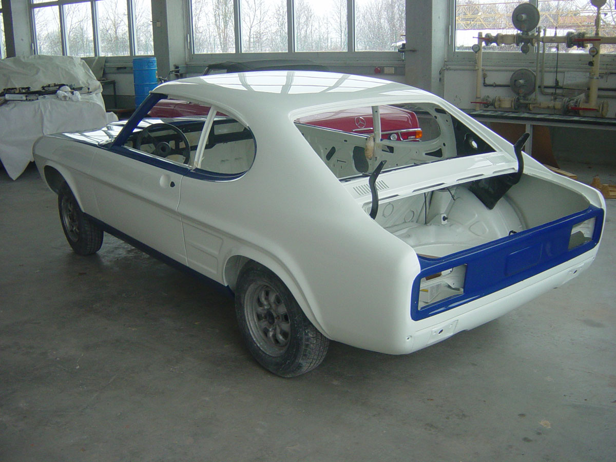 Das Einpassen der Türen, Hauben und Kotflügel und auch die Vorbereitung für die Lackierung (inklusive Spachteln) wurde in Eigenregie durchgeführt, ebenso die Lackierung von Bodenblech, Motorraum und Tür- und Hauben-Innenseiten. Im Jahr 2010 konnte die Karosserie schon mal auf der Klassikwelt Bodensee bewundert werden – wegen Regen war sie beim Transport in eine Plane + Stretchfolie eingepackt.