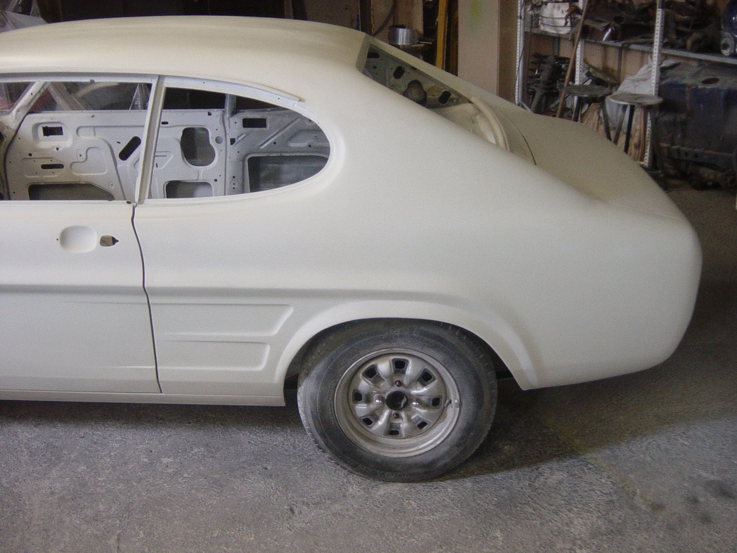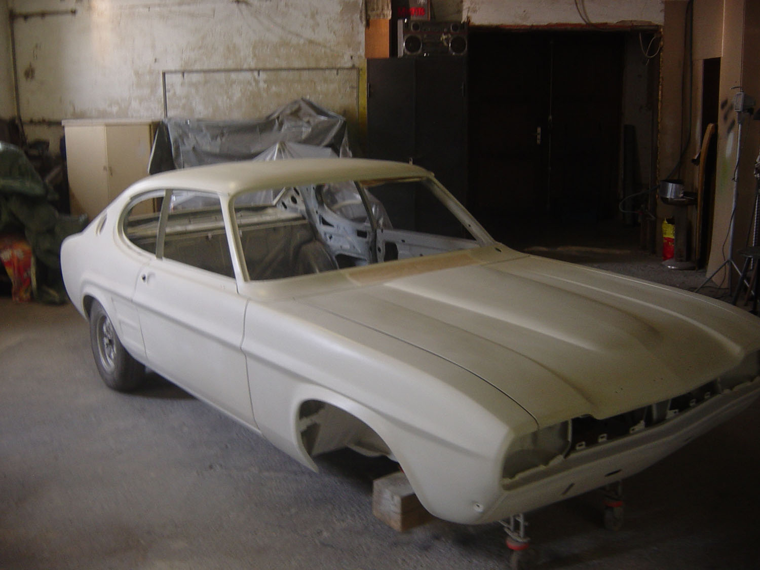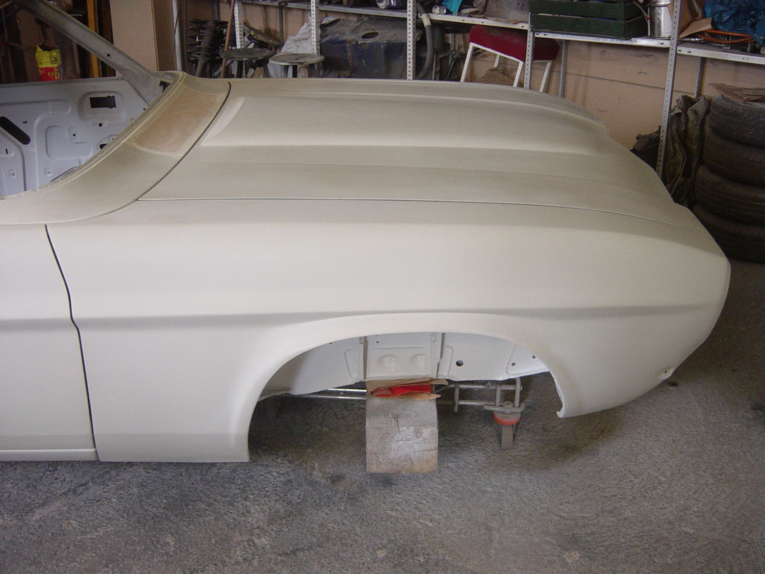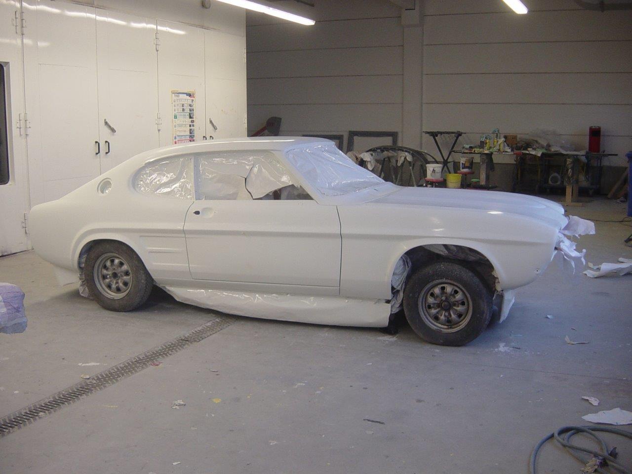 Das Einpassen der Türen, Hauben und Kotflügel und auch die Vorbereitung für die Lackierung (inklusive Spachteln) wurde in Eigenregie durchgeführt, ebenso die Lackierung von Bodenblech, Motorraum und Tür- und Hauben-Innenseiten. Im Jahr 2010 konnte die Karosserie schon mal auf der Klassikwelt Bodensee bewundert werden – wegen Regen war sie beim Transport in eine Plane + Stretchfolie eingepackt.